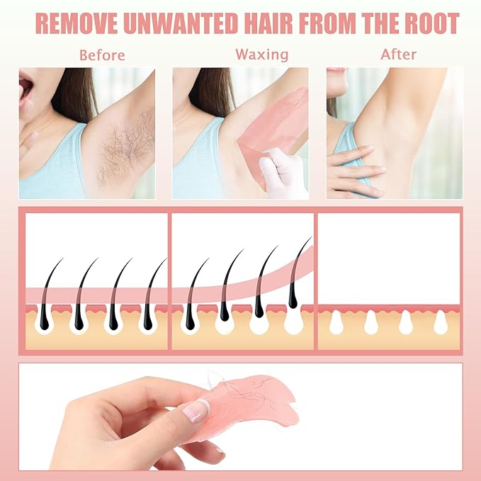 • 【Save Time & Money, Long-Lasting Results】Our brazilian wax kits are suitable for women and men for full body hair removal, including but not limited to the face, eyebrows, lips, arms, underarms, chest, bikini, and legs. Waxing hair removal extracts the hair from the root, thus slowing down the growth. Enjoy 3-6 weeks of smooth, hairless skin for a fraction of the cost.