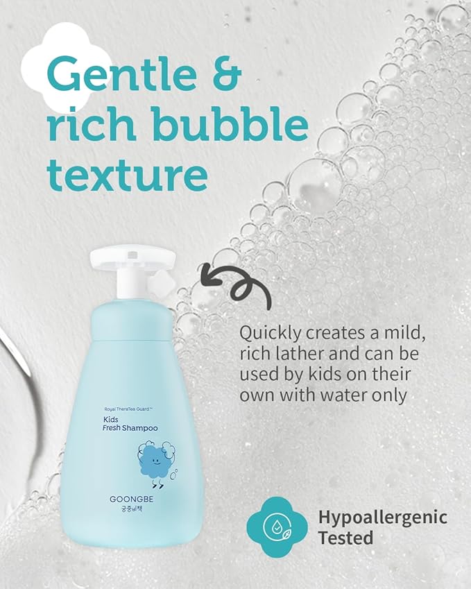 - Hydrating & Refreshing Foam: Enjoy the soft, luxurious foam of GOONGBE Kids' Fresh Shampoo. Contains micellar particles that effectively remove dirt and environmental residues while leaving hair moisturized and hydrated, creating a clean, refreshing finish that soothes the scalp.