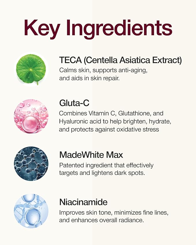 - ANTI-AGING BENEFITS - Experience significant improvements in skin elasticity and firmness with our advanced anti-aging formula. Infused with TECA Centella Asiatica extract and Gluta-C, this ampoule helps to minimize wrinkles and fine lines, promoting a youthful appearance and revitalized skin texture.