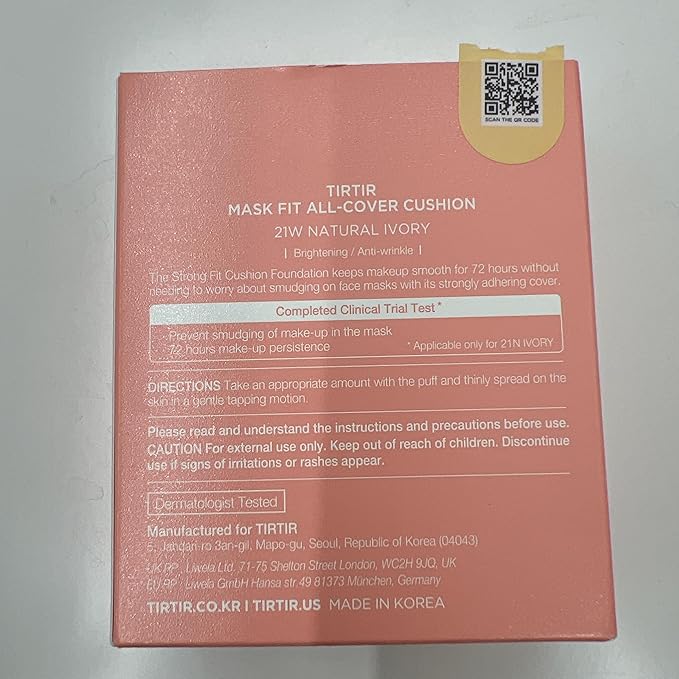 TIRTIR Mask Fit All Cover Pink Cushion Foundation | High coverage, Velvety Matte Finish, Lightweight, Flawless, Corrects Redness, Korean Cushion (#21W Natural Ivory, Full Size, 0.63 Fl Oz)