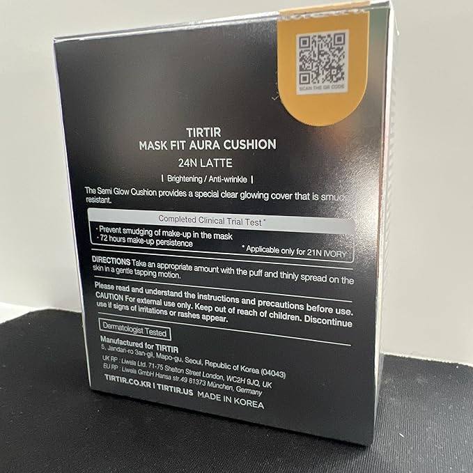 TIRTIR Mask Fit Aura Silver Cushion Foundation | Semi-glow Finish, Natural Coverage, Moisturizing, Lightweight, Korean cushion foundation (#24N Latte, Full Size, 0.63 Fl Oz)