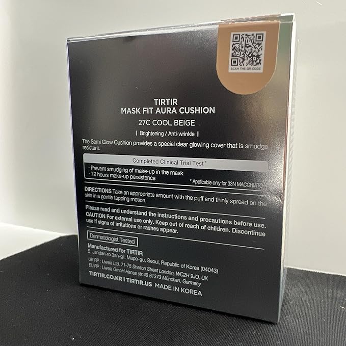 TIRTIR Mask Fit Aura Silver Cushion Foundation | Semi-glow Finish, Natural Coverage, Moisturizing, Lightweight, Korean cushion foundation (#27C Cool Beige, Full Size, 0.63 Fl Oz)