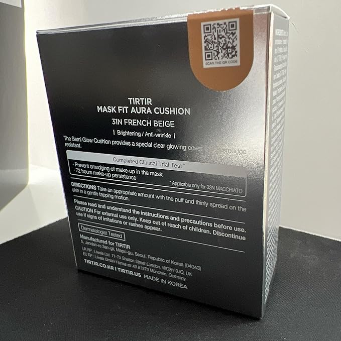 TIRTIR Mask Fit Aura Silver Cushion Foundation | Semi-glow Finish, Natural Coverage, Moisturizing, Lightweight, Korean cushion foundation (#31N French Beige, Full Size, 0.63 Fl Oz)