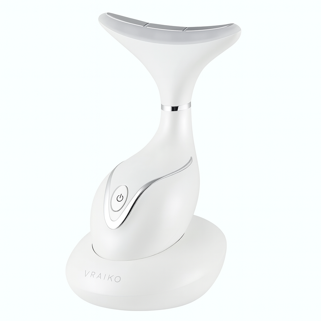 VRAIKO Iris Neck Face Massager, Pro Face Sculpting Tool with Charging Base, All-in-1 Facial Device for Enhanced Absorption, Radiance, Contouring, Elasticity, Home Facial Spa (White)