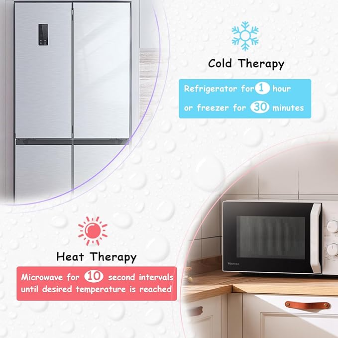 - 【Hot & Cold Therapy】 - Just simply put the ice pack for eyes in the freezer for at least 30 minutes or in the refrigerator for one hour for cold therapy or heat it in the microwave for 10s intervals for heat therapy. Use the plush side for a cool experience or the plastic side for a colder experience. The eye ice mask comes with a resealable bag that helps for healthful storage and prolongs the usage lifetime or isolates the fridge odor. Hand wash, rinse & lay flat to dry.