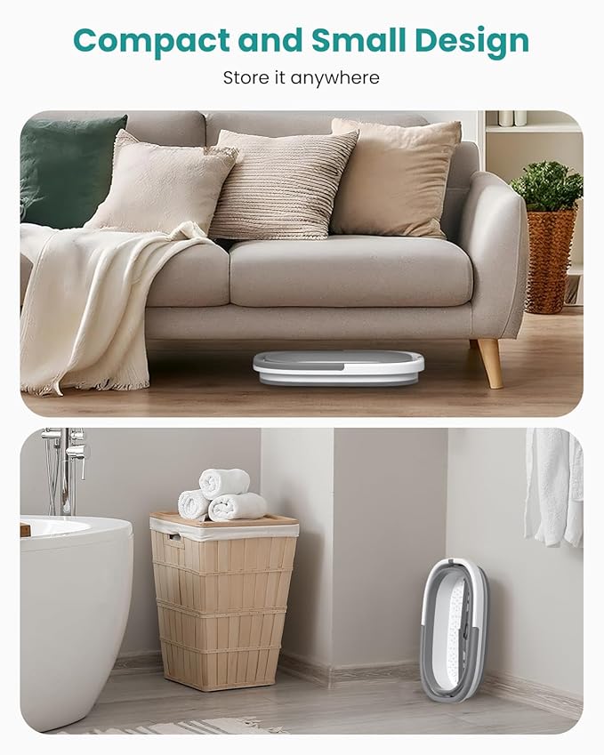 - Space-Saving Collapsible Design: This collapsible foot spa folds down to a slim 16.14 x 12.59 x 2.76 inches, fitting easily under beds, couches, or against walls. Perfect for saving space, this foot bath tub is always ready for a convenient foot soaking tub experience at home.