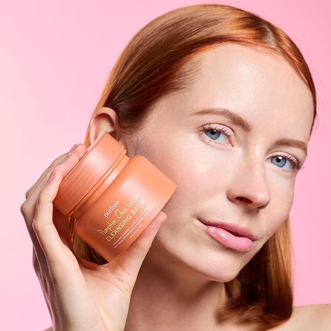 pūrlisse Pumpkin Chai Latte Cleansing Balm - Hydrating Facial Cleanser Enriched with Pumpkin, Chai & Soy Milk - Makeup Remover Balm & Gentle Face Wash for Women & Men (3.4 oz)