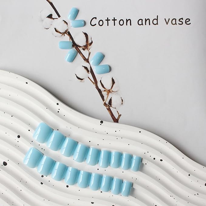 - Lasting Effectlight blue Nails Press ons:Unique formula ensures this light blue glue on nails short square long last and water-proof.If you prep your nails properly,these short coffin nails glue on could easily stay on for 4+ weeks