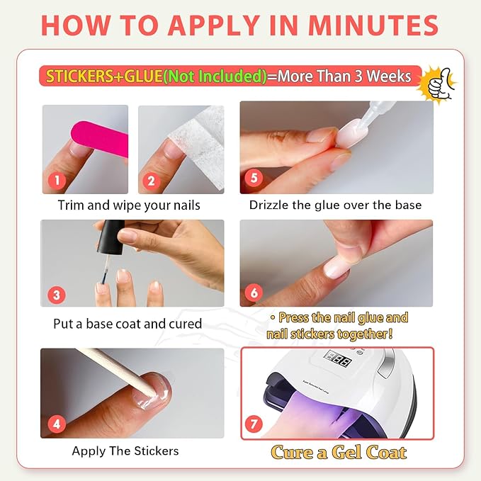 - A Game Changer:These short false nails square come to wear,with no glue or nail polish required and no drying time,super easy to apply.We also give u everything you need just in case.TIP:NO GLUE INCLUDED