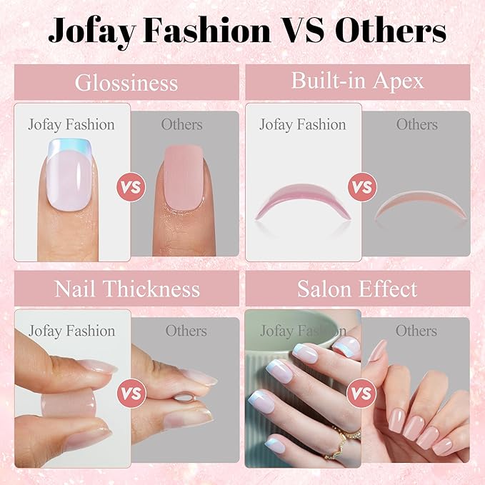 - 【Natural & Comfortable】Jofay Fashion acrylic nail tips are of moderate thickness, and the tapered cuticle design fits the edge of the nail better, giving a comfortable and natural effect without placing a heavy burden on the nail bed.