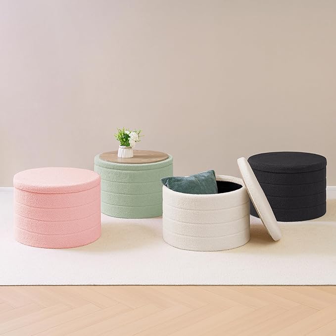 - Good-looking appearance:Teddy fabric feels comfortable and soft. The simple lines give this round faux teddy stool an understated modern feel. This Ottoman is soft, comfortable and lovely, adding to the comfort of your home life.