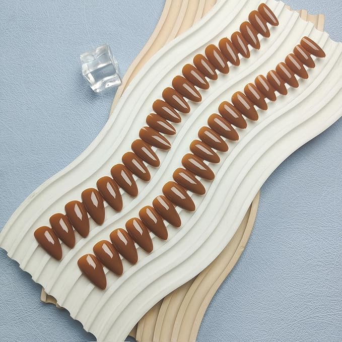 - Salon-Quality Almond Nails Gel x Nails: Experience the joy of salon-quality stick on nails for women almond shape in the comfort of your own home. Light brown fake nails Press ons bring the sophistication and elegance of a professional salon without the hassle of appointments or spend a lot of time and money