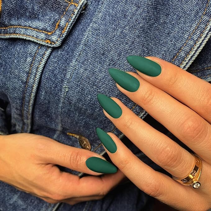 - Salon-Quality Almond Nails Gel x Nails: Experience the joy of salon-quality stick on nails for women almond shape in the comfort of your own home. Dark green fake nails Press ons bring the sophistication and elegance of a professional salon without the hassle of appointments or spend a lot of time and money