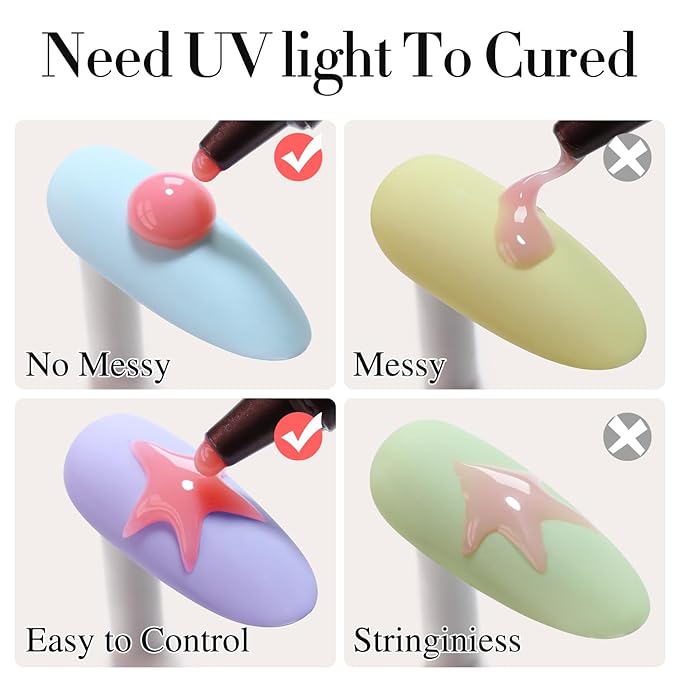 - 3D Sculpting Gel for Nail Art: The needle tube design for molding gel for nails don't need any tools. Simply squeeze and shape directly onto your nails. You can enjoy your nail art design at home with this clear nail sculpture gel. Can Mixed with other nail art products such as natural nails, nail tips, fake nails, false nails, acrylic nails, etc,. Required base top coat, and need to cure under nail lamp.