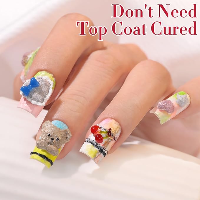 - 3D Sculpting Gel for Nail Art: this is a new upgraded solid 3D Nail gel with white square bottle. You can enjoy your nail art design at home with this non-stick hard building gel, this clear solid nail gel is easy to use and apply. It requires no tools and has a solid texture that won't flow. Required base top coat, and need to cure under nail lamp