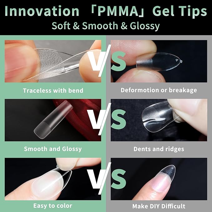 - No Trace Soft Gel Nail Tips: Crafted from gelly soft gel material, these fake nails leave no trace even when bent. Their bright clarity allows for easy pressing, trimming, and painting, helping you create your ideal nail shape effortlessly. Perfect for a true DIY manicure.