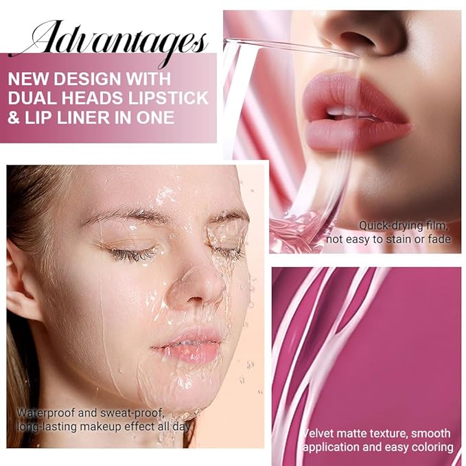- 【2 IN 1 Lip Liner & Liquid Lipstick】The double ended design made you can use lipstick and lip liner on both ends. New design with dual heads lipstick & lip liner in one, for draw delicate lip line before applying lipstick. It combines lip line and liquid lipstick and makes double-end lipstick more perfect,meets the need of all occasions.