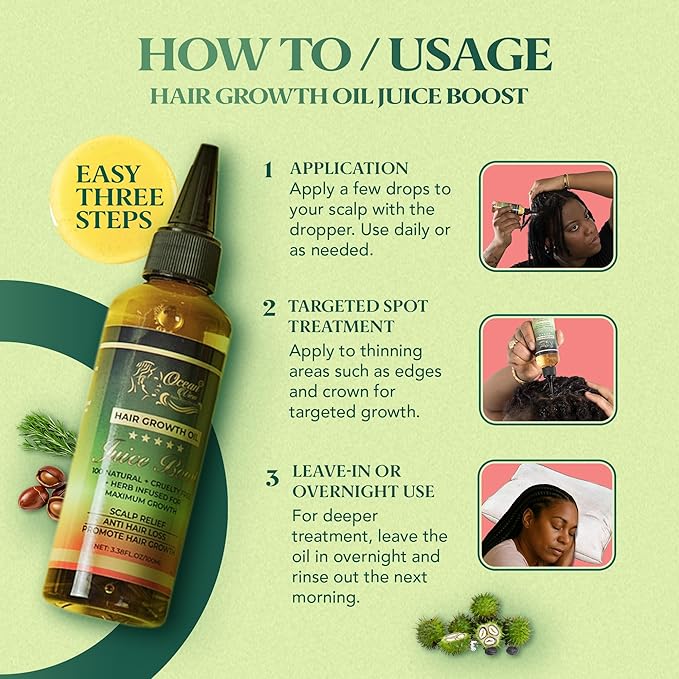 - How to use – Apply Juice Boost nightly or 3–4x/week; consistent use improves the appearance of thickness and shine. (Results vary; cosmetic product, not a drug.)