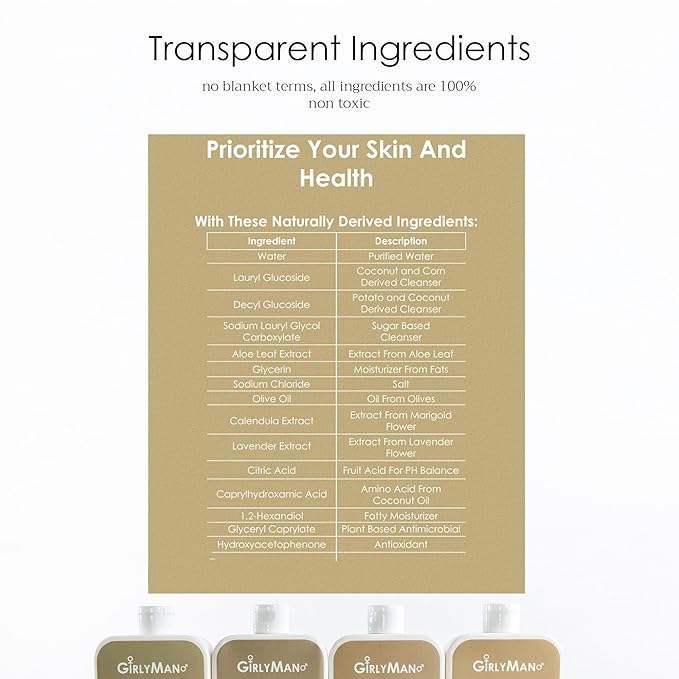 GirlyMan Natural Body Wash - Made with Olive Oil & Aloe Extract, No Artificial Fragrance, PH Balanced, Gentle Formula, Nourishing Ingredients, Family Owned (Unscented)
