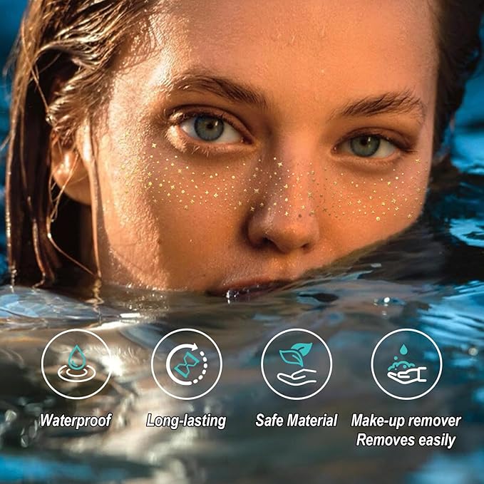 - 【Long-Lasting Cosmetic Glitter】these gold face glitter stickers are waterproof, ensuring they stay in place throughout any event, making them the perfect rave accessories for women and kids.