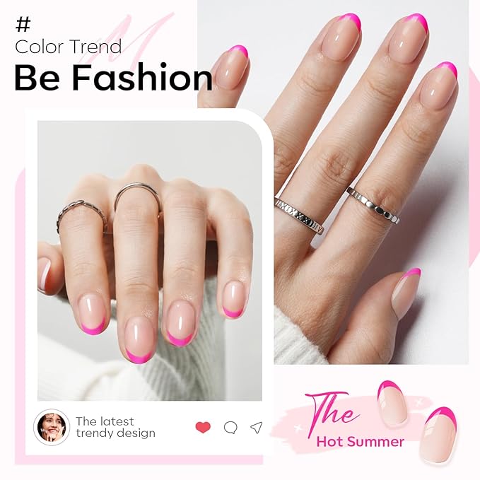 - Hot Pink French Press On Nails: Modelones press on nails short give you infinite opportunity to play around with different trendy nail styles for every mood, every outfit, and everyday