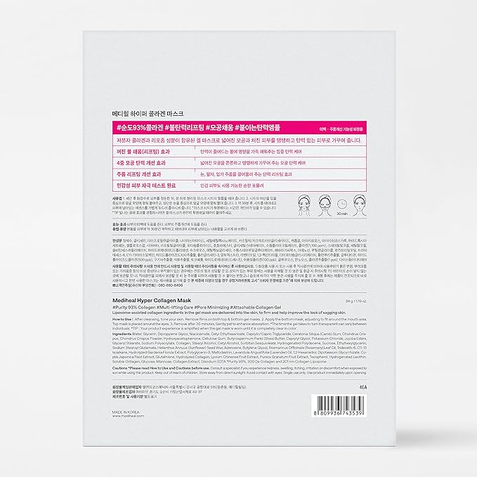 Mediheal Hyper Collagen_Collagen Real Deep Mask 4pcs | Collagen Gel Mask for Multi-lifting Care | Achieves Bouncy Skin | Boosts Pore Elasticity | 30mins Quick Care | Extra Hydration
