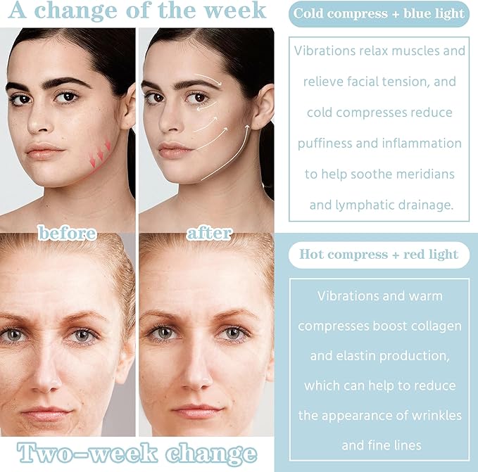 - ✅ 【One Device, Four Powerful Treatments】Whether you want to lift, tighten, calm, or repair, this gua sha tool has you covered:Mode 1: Smooth fine lines with soothing heat and red light,Mode 2: Shrink pores and reduce inflammation with cooling blue light,Mode 3: Firm and tone using microcurrent and purple light,Mode 4: Rejuvenate skin with a combination of heat, red light & microcurrent,Optional vibration enhances absorption of serums and boosts treatment effectiveness.