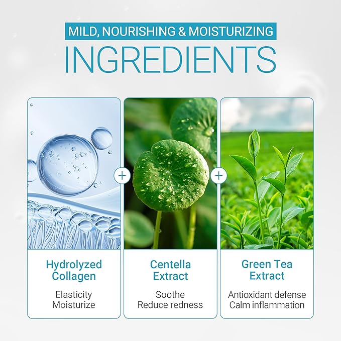 - NOURISHING INGREDIENTS: The essence is packed with Collagen, a key component for healthy, firm skin. This powerful ingredient works to attract and retain moisture, visibly improving skin's plumpness and helping to maintain a youthful, supple texture. Centella extract to soothe irritated skin and reduce redness, green tea extract to soothe and calm inflammation.