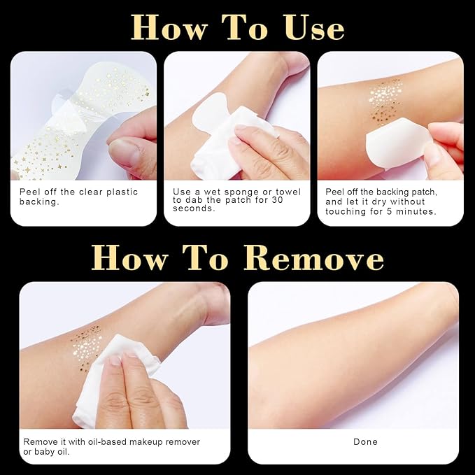 - How To Use:Step1:Peel off the clear plastic backing. Step2:Use a wet sponge or towel to dab the patch for 20 seconds.Step3:Peel of the backing patch,and let it dry without touching for 5 minutes.
