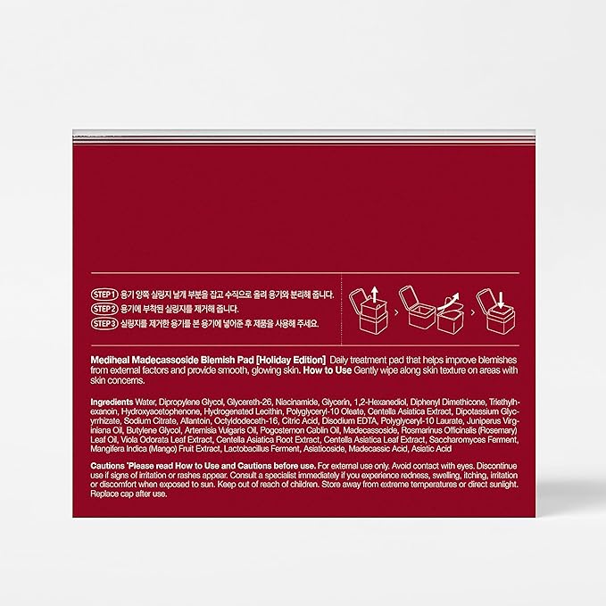 MEDIHEAL Toner Pads [Madecassoside] Blemish Care - Holiday Gift Edition - Centella Asiatica to Improve Uneven Skin Tone - Vegan Hypoallergenic Face Gauze (100 Count)