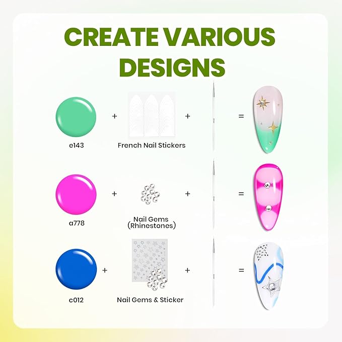- One Set for All Nail Art: The set contains a variety of rich colors and can be customized in different styles to suit various occasions, meeting all your DIY manicure needs. The manicure set has all the colors, accessories, and ornaments you need. It is great for beginners and enthusiasts to try the art of nail polish and exercise your personality charm through different manicure styles!