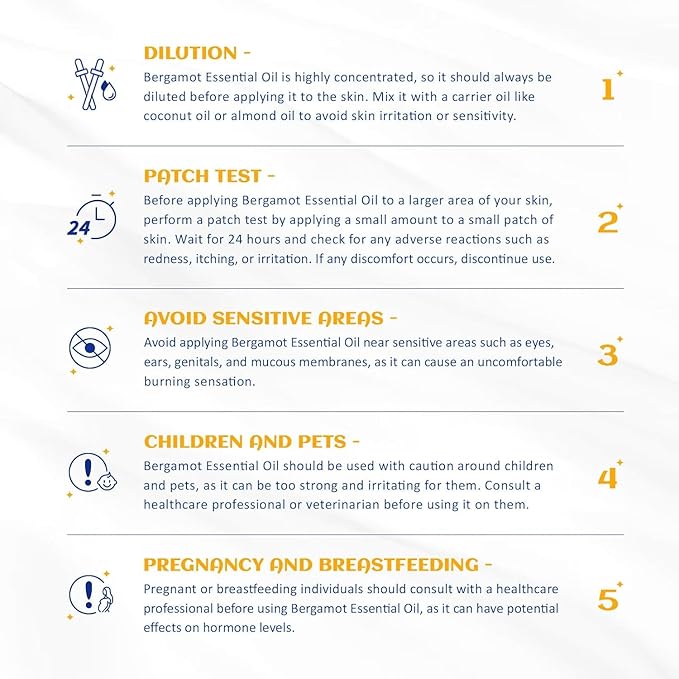 - [ ๐๐ฎ๐ฅ๐ญ๐ข๐ฉ๐ฎ๐ซ๐ฉ๐จ๐ฌ๐ ๐๐ฌ๐ ] - Bergamot Essential Oil is versatile. Use in diffusers to eliminate odors and conduct aromatherapy. Use it for skin care, hair care and body massage after diluted with carrier oil (e.g. Sweet Almond, Jojoba or Castor Oil). It can also be used in DIY soaps, candles and sprays, adding bergamot scent for your masterpieces. There are more uses for you to explore