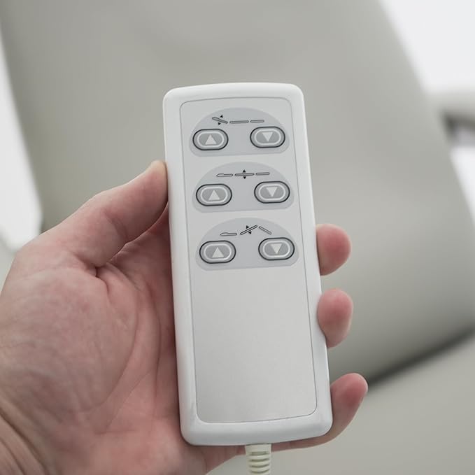 - Free Hand remote Control + Fully loaded with a side and back remote that controls back/leg, height and tilt adjustment. The footrest can be adjusted manually or moved independently by a lever on the side