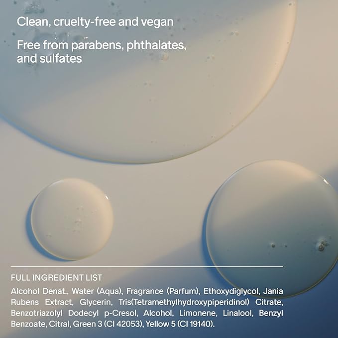- SKINCARE INFUSED BODY SPRAY: A fragrance gentle enough to wear on every inch of skin. Infused with Red Algae and Glycerin to help support hydration and refresh the skin. Vegan, cruelty-free and leaping bunny certified. Available in three gender neutral scents.