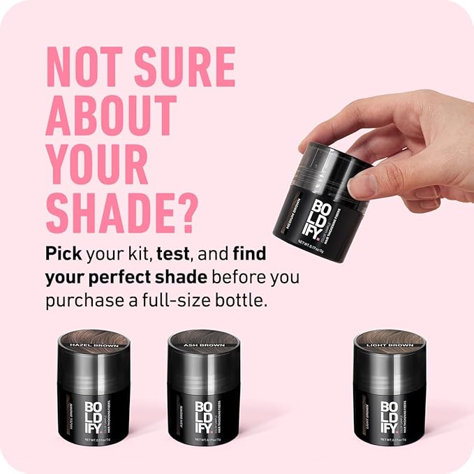 - INSTANTLY FILL IN THINNING HAIR WITH UNDETECTABLE FINISH: Formulated with skin safe ingredients and mineral colorants, Boldify Hair Thickening Fibers bond seamlessly to existing hair for a real hair effect that's invisible to the eye. Perfect for enhancing the crown and partline, our fibers are designed with follicle-mimicking molecules for the most natural blend. Use Boldify Hairline Powder for areas with less hair.