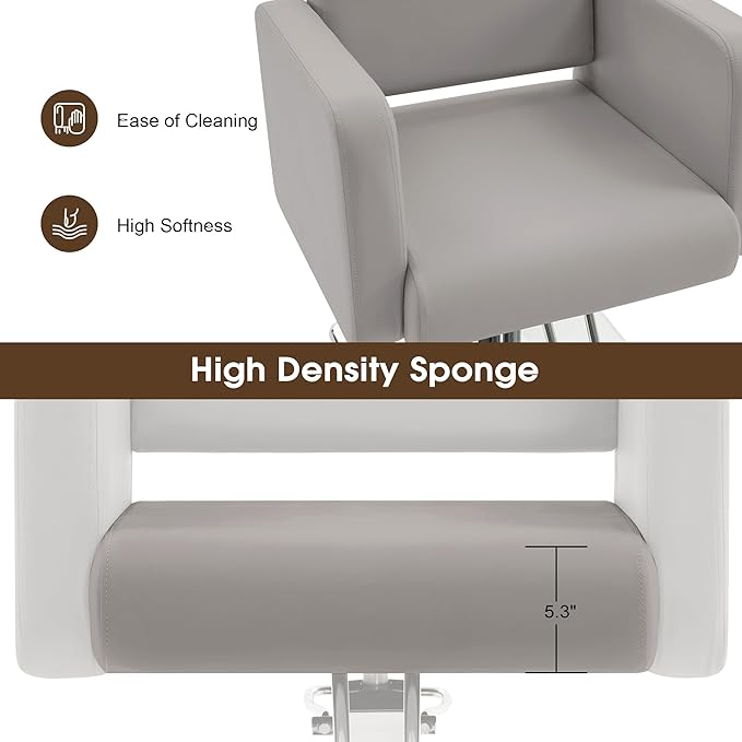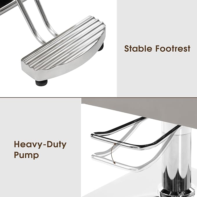 - High Practicability: High-quality PVC leather, which is waterproof and stain-resistant, gives you a great convenience when cleaning the salon chair. 360°Swivel with locking mechanism provides versatility, which is convenient for you to provide customers with a full range of services. And the oil pump can be adjusted up to 5.1 inches, so you can adjust the appropriate height according to the height of the customer.