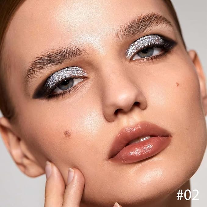 Single Glitter Eyeshadow, Shimmer Eyeshadow Palette, Korean Eye Glitter Makeup, Ultra-Blendable, Sparkle Silver Eye Shadow, Single Shade Metallic Pigmented, (Silver)