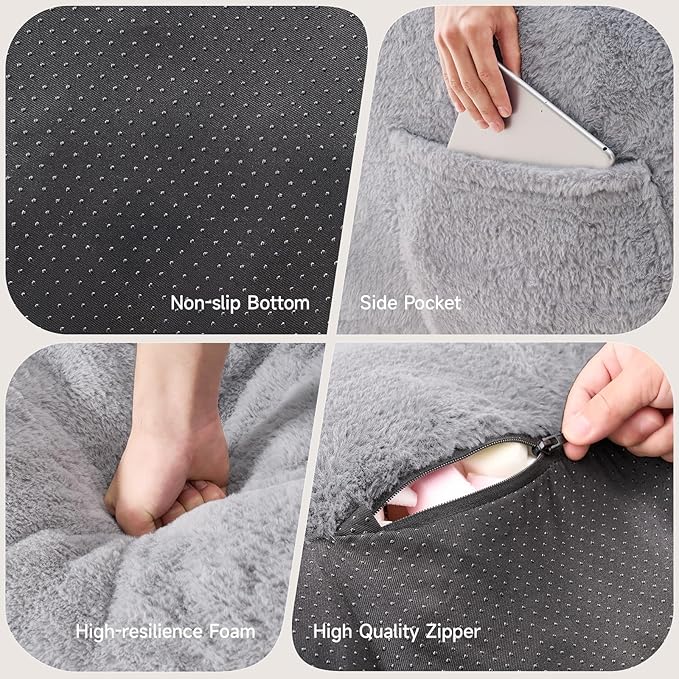 - Ergonomic Support:Experience luxury with this soft faux fur bean bag chair, filled with high-density foam to provide ergonomic back support and spacious armrests for ultimate comfort. Perfect for extended lounging sessions.