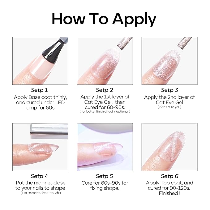 - Shimmery Pigmented Art: For best results, hover the magnet over uncured polish to shape dazzling patterns before curing (60s under lamp). Pro tip: Keep the magnet close but not touching for sharp, vibrant effects every time