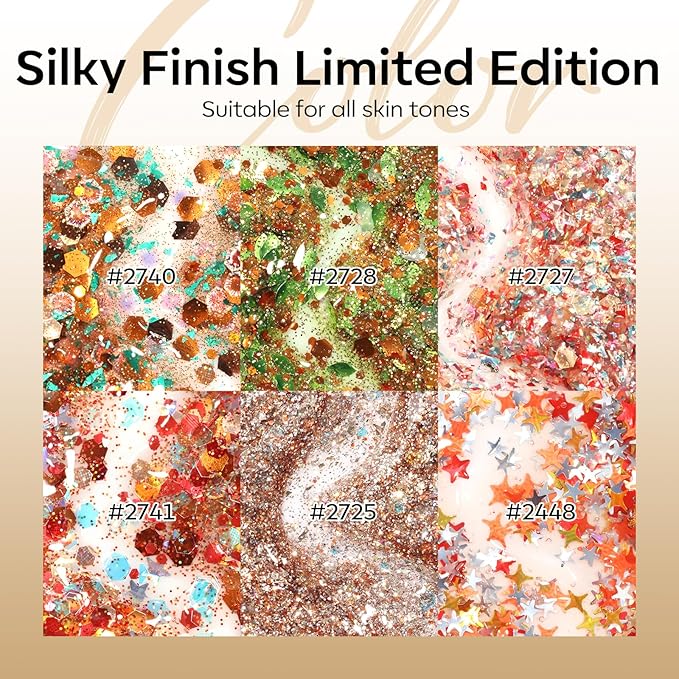 - Include: 6 Pcs Creative Ornament Glitter Gel Polish (geometric shapes in different fall colors/ gold glitter/ colorful stars)+ 1 Wooden Stick for adjusting the position of glitters