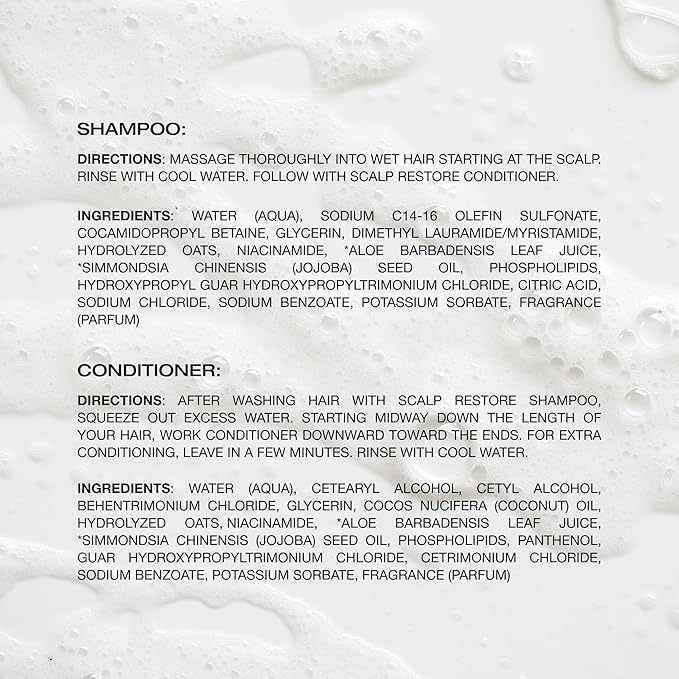 - Healthy Scalp & Hair: Achieve the perfect clean for scalp health and hair strength with the ultra-hydrating Scalp Restore Shampoo and Conditioner. Jojoba oil, aloe and niacinamide help hydrate and remove buildup for an invigorating hair care regimen