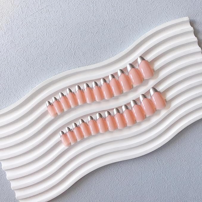 - Beauty in Every Fingertip: Sliver French press on nails oval nails suitable for various social occasions great for nails salon,DIY home nails art.Perfect to be used on wedding,working,prom,dating,and medium length press on nails almond also suitable for Valentine's,Mother's Day and other festival.Medium short almond press on nail is given the perfect surprise for partners,family,friends