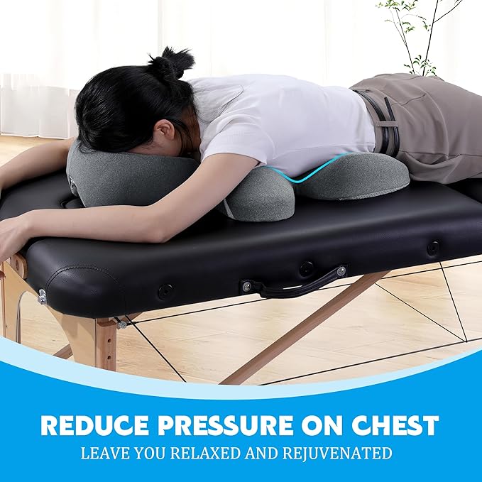 - 【Ergonomic Excellence】: Our massage pillow face down is engineered with a uniquely curved design, this face down pillow is specifically crafted to relieve breast pressure when in a prone position. It's designed to avoid any discomfort or squeezing of the chest area, especially beneficial for women, allowing for a truly soothing and enjoyable massage experience.