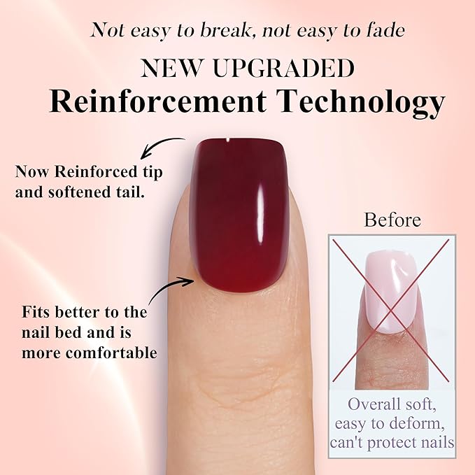 - 【High Quality & Durable】Full coverage false nails are made of high quality acrylic material and soft gel, the nail tips are elastic and durable, not easy to break. The surface of the fake nails is coated with a high-gloss protective gel, which is not easily worn out even after repeated use.