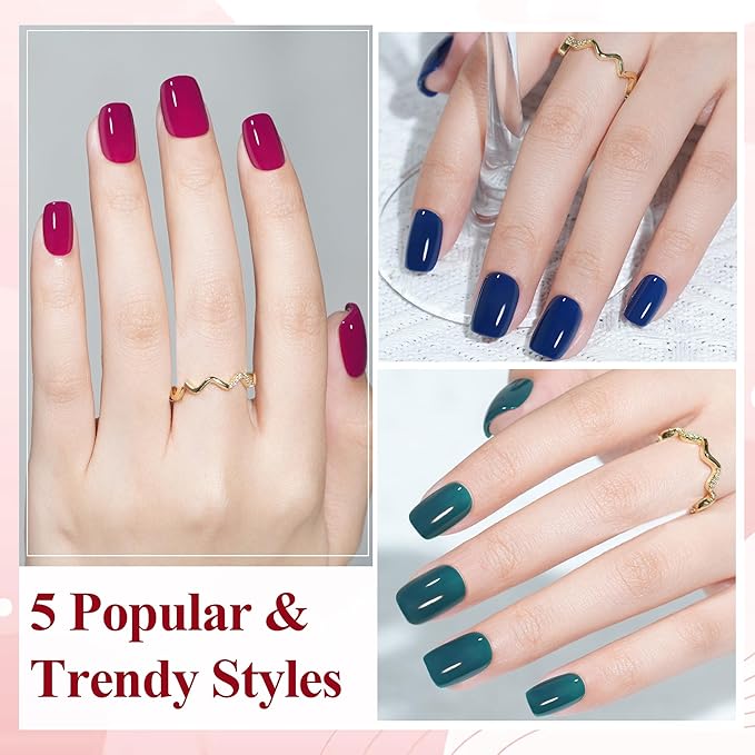- 【Solid Color Press-On Nail Kit】This set includes 5 of the most popular solid color press-on nails: blue, burgundy, green, rose red, and brown. There are 16 sizes to choose from to ensure a perfect fit for your fingers.