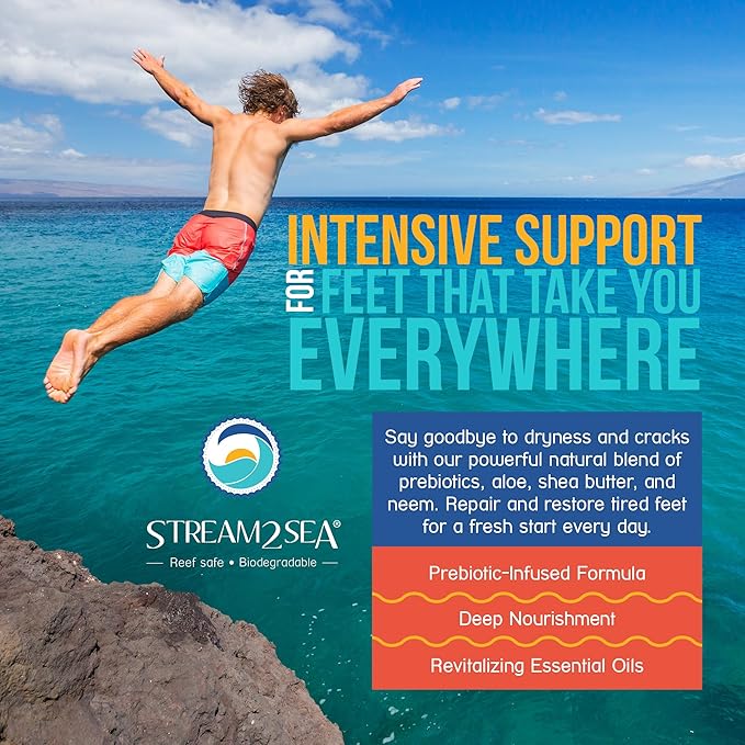 STREAM 2 SEA Active Foot Cream, Intensive Support for Active & Often Wet Feet - Softens Cracked Heels, Calluses & Dry Skin, Enriched with Neem and Tea Tree, Fast-absorbing and Non-greasy - 3 Fl oz