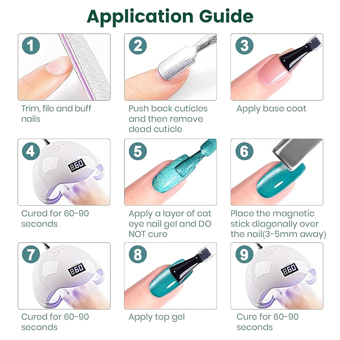- EASY TO APPLY:This magnetic cat eye gel polish set is made with natural resin ingredients, magnetic shimmers, silver pigments, and a resin formula, so this gel polish set won't cause smudges cracks or chips. It can last for 21+ days with perfect shine under the proper application