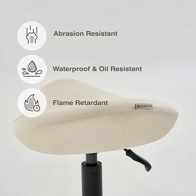Ergonomic Saddle Seat Adjustable Pneumatic Hydraulic Drafting Swivel Rolling Stool Chair for Medical Hygienic SPA Massage Salon Home and Office - Hilo 508 (Vanilla, Standard)