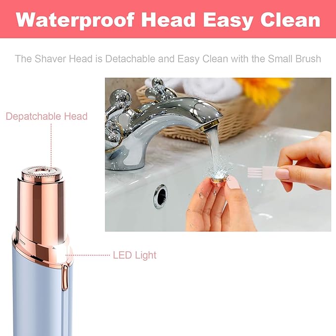 - [DETACHABLE HEADS EASY CLEAN] The detachable head can be cleaned under running water easily with the brush. One button easy to use, designed for beginners, the precise electric shaver can remove tiny hair easily to make sure you won’t miss any peach fuzz hair