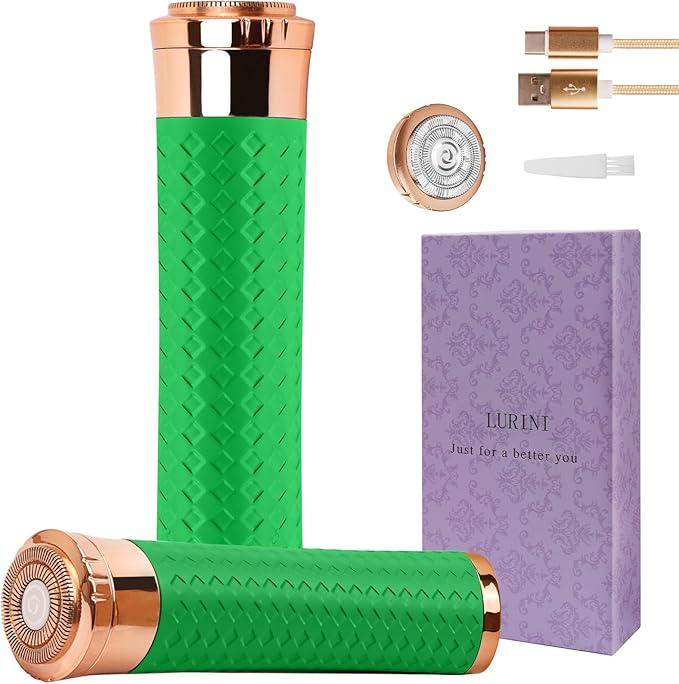 Facial Hair Remover for Women, Painless Rechargeable Hair Removal Device, Comes with 2 Replacement Heads, Portable Electric Shaver/Razors for Face, Chin, Upper Lip, arms (Green)